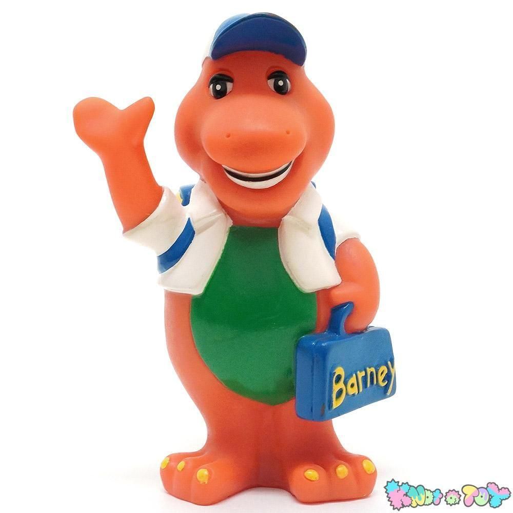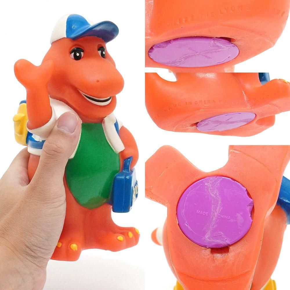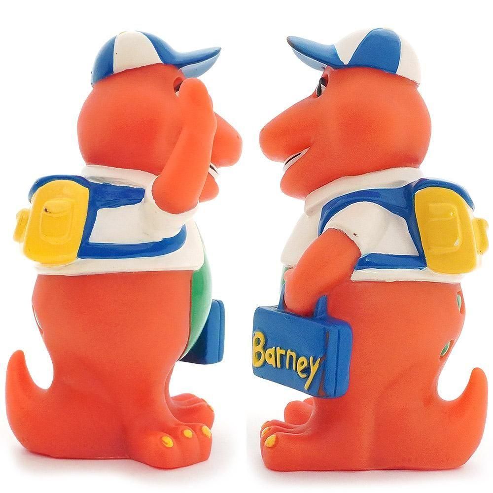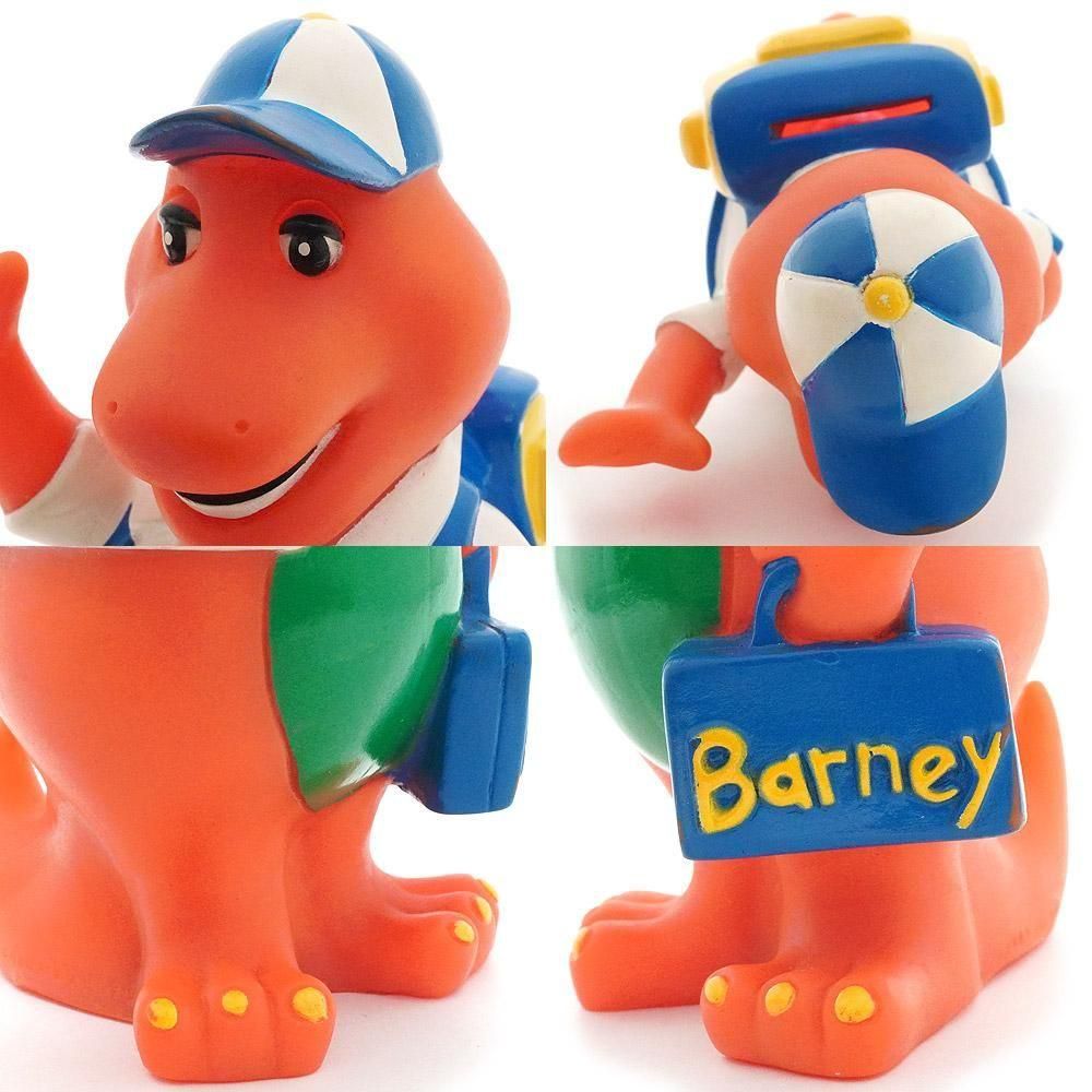 1992年にHoppiness Express社から販売された、アメリカの子供向け番組「Barney&Friends」のメインキャラクター「Barney the Dinosaur」のソフビ製貯金箱「School」です。