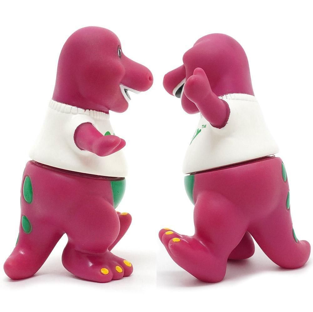 1993年にKid Dimension (Hasbro)社から販売された、アメリカの子供向け番組「Barney&Friends」のメインキャラクター「Barney the Dinosaur」のソフビフィギュア「T-Shirt」です。
