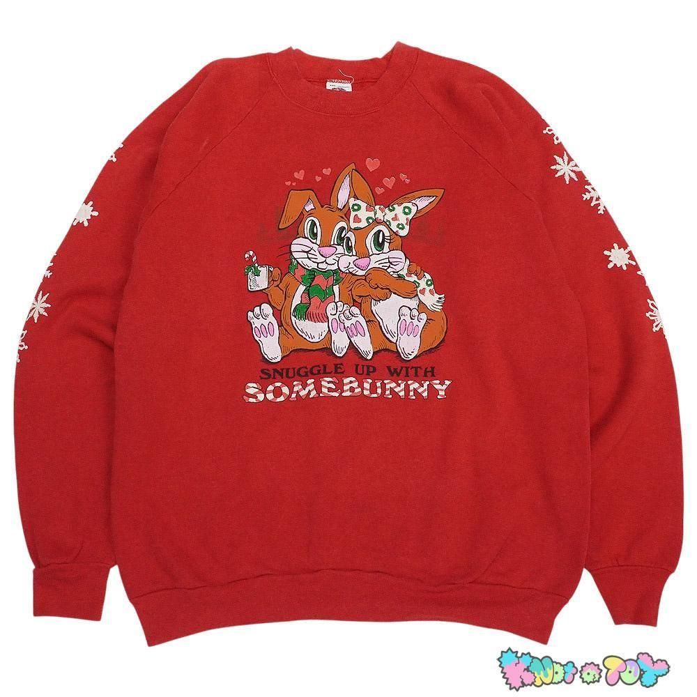 【商品名:Vintage Print Sweatshirt/ビンテージプリントスウェット/トレーナー・古着・レッド・Cristmas/クリスマス・ Bunny/バニー・Fruit of the Loom】