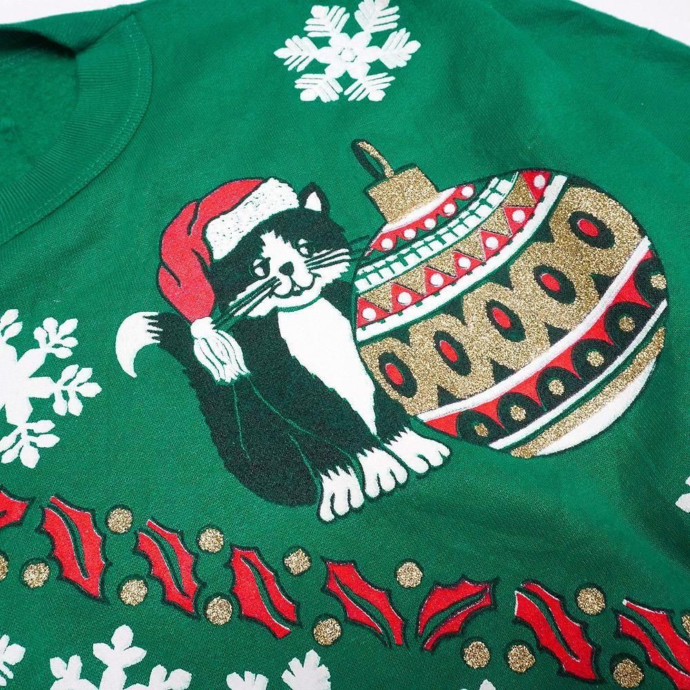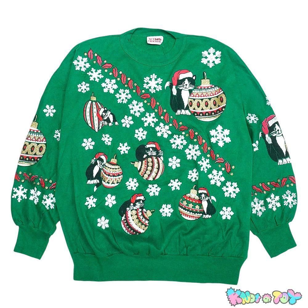 Vintage Print Sweatshirt/ビンテージプリントスウェット/トレーナー・古着・グリーン・Cristmas/クリスマス・Kitty/ネコ・NUTCRACKER