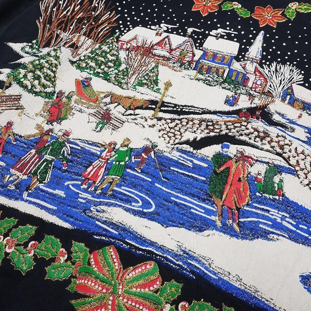 【商品名:Vintage Print Sweatshirt/ビンテージプリントスウェット/トレーナー・古着・ブラック・Cristmas/クリスマス・Ice Skating Rink・TURTLE BAY】