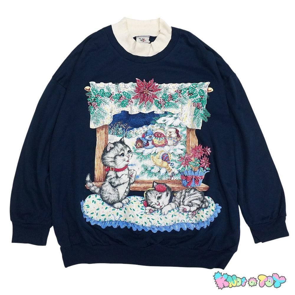 【商品名:Vintage Print Sweatshirt/ビンテージプリントスウェット/トレーナー・古着・ネイビー・Cristmas/クリスマス・Kitty & Bird・NUTCRACKER】