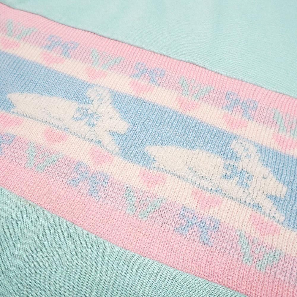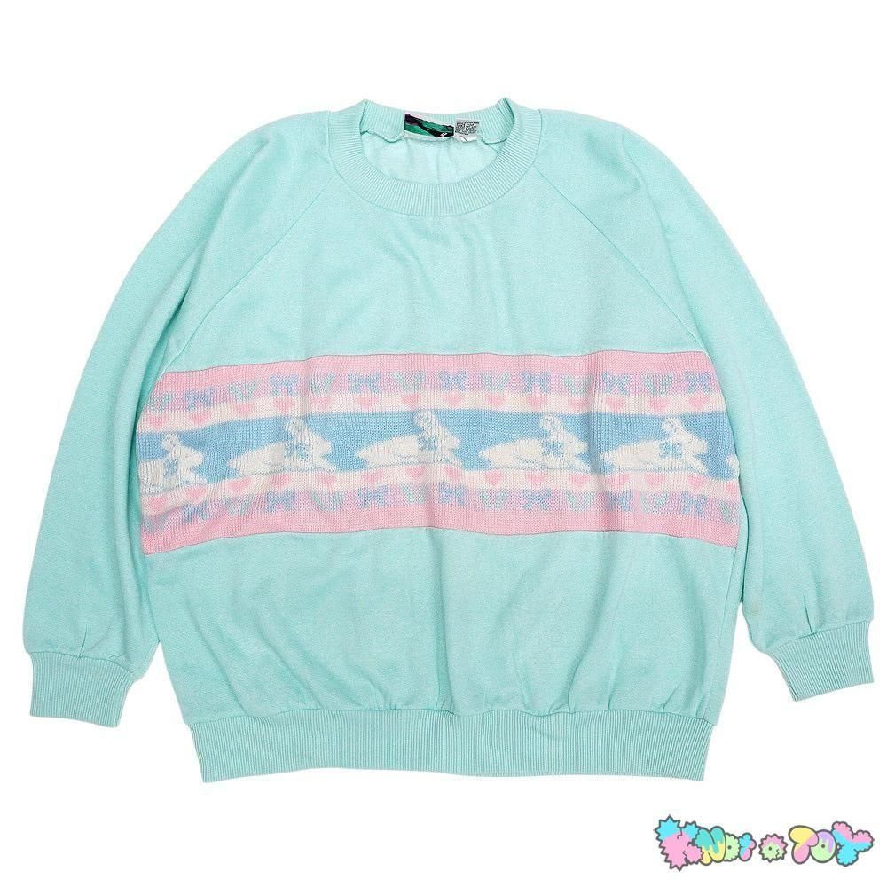 【商品名:Vintage Sweatshirt Knit/ビンテージスウェット/トレーナー・古着・パステルグリーン・ニット切り替え・Rabbit/Bunny/ウサギ・Center Aisle】