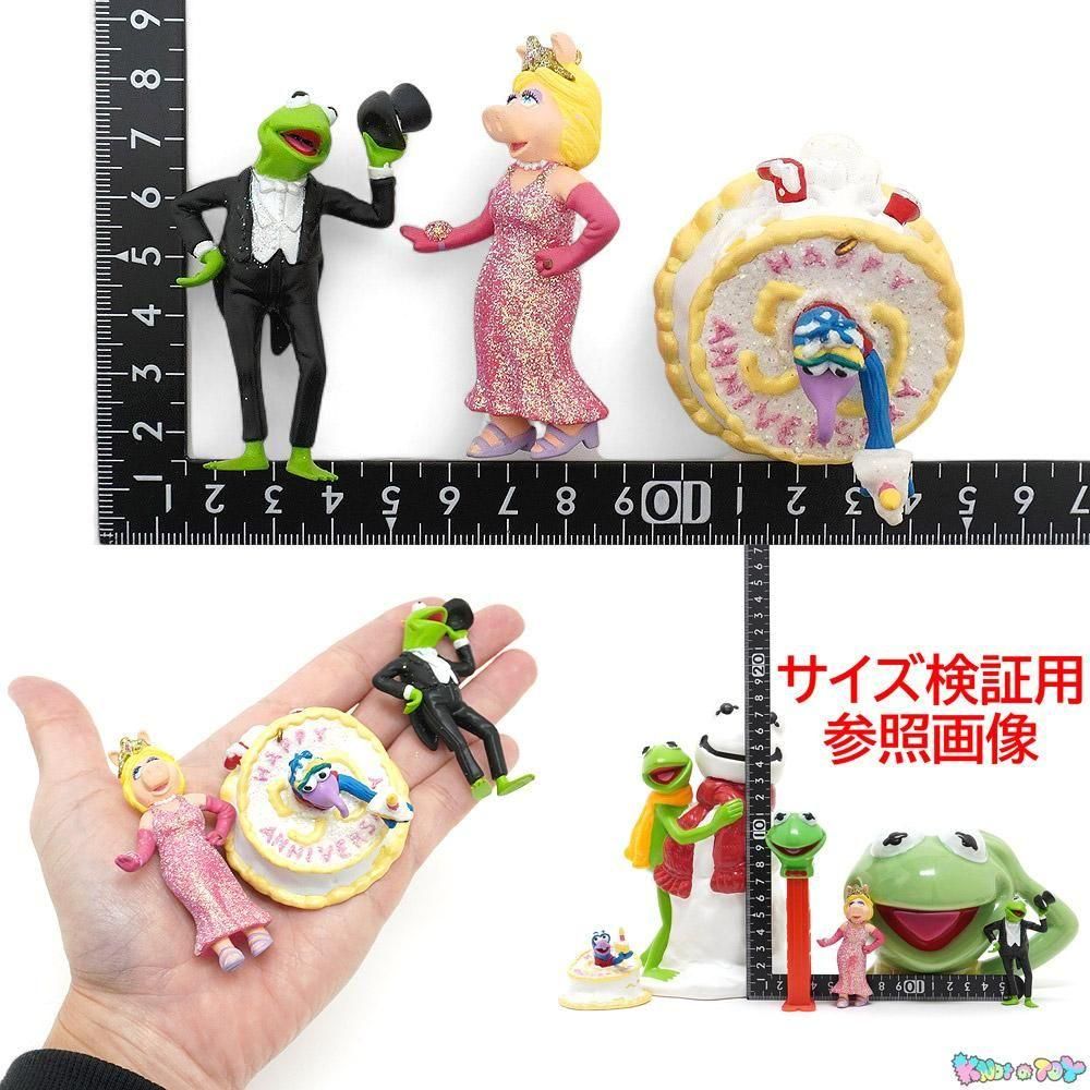 【サイズ(約):カーミット縦6.55cm (ハット〜足)・ミスピギー縦6.95cm (耳〜足)・ゴンゾ縦4.6cm (蝋燭の火〜底)・前後5.7cm】