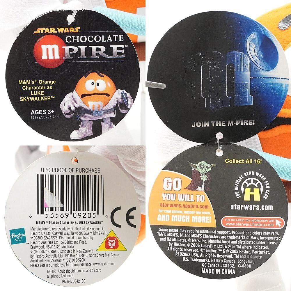 紙タグ・TM/ M&M'S, M, and M&M'S Characters are trademarks of Mars, Incorporated and its affiliates. Mars, Inc. Manufactured and distributed under license by Hasbro. 2005 Lucasfilm Ltd. & or TM where indicated. All rights reserved. * and/or TM & (C) 2005 Hasbro, Pawtucket, RI 02862 USA. All Rights Reserved. TM and denote U.S. Trademarks. Hasbro Canada,